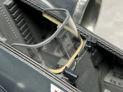 ![]() シールドを後席計器盤の上部に接着。計器も取り付ける。この他にエア吹き出し口とそのパイプなどあるが省略。←ヲイ! |