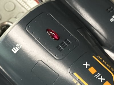 ![]() キットの取り付け部には凹みがあるので、センサー(?)接着後にパテで埋める。 |