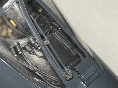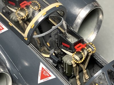 ![]() エジェクションシートにフェイスカーテンハンドルを接着し、シートをコクピットに接着する。 |
