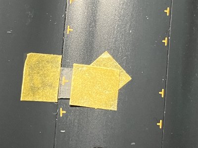 ![]() ふと気付くと、胴体上面の「T」のインレタが1つ欠けている。うっかり引っ掛けたかな。予備で補修。 |