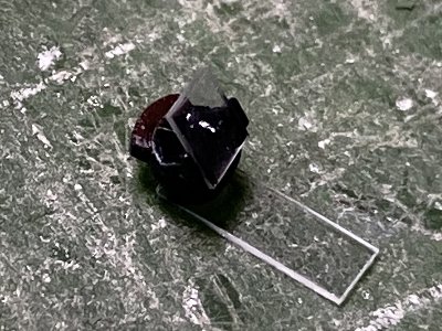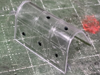 ![]() クリアパーツを入念に擦り合わせ(これは後付けでも必須)、断面を黒く塗り、光硬化瞬間で接着したところ。 |