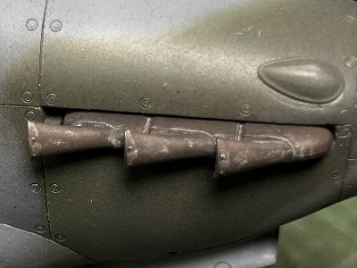 ![]() ピトー管は作り置きの真鍮細工。スピット1で2つ作ったボツの方。ピント外れご容赦。リベットの具合が分かっていいかも。 |