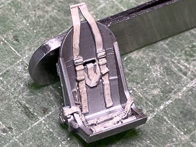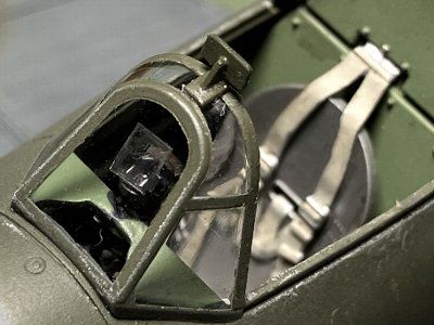 ![]() リアビューミラー(英国風の言い方)も3DP。鏡面はミラーフィニッシュ。接着は木工ボンド。シートもコクピットに接着する。 |