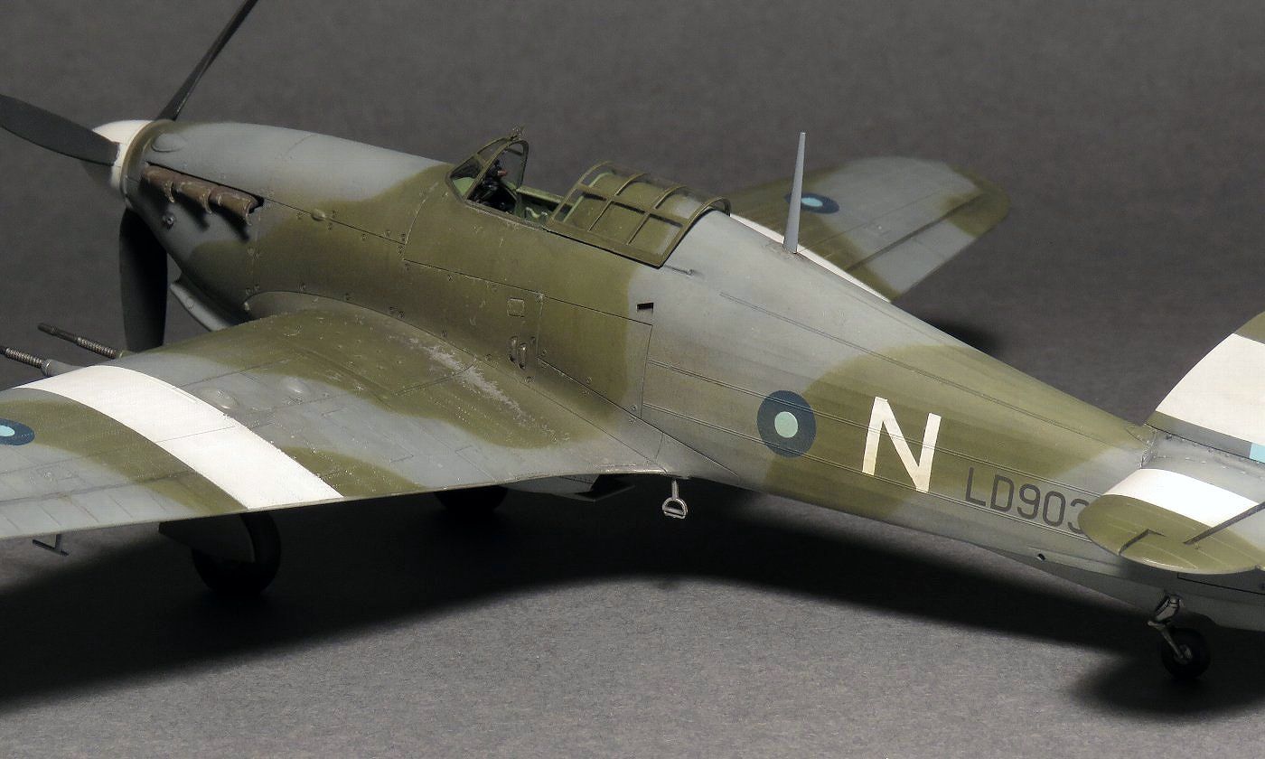 ![]() ホーカー ハリケーン Mk.IIc Trop インド空軍第10スコードロン所属 LD903「N」1945年4月ビルマ、チャウピュー基地 キットの出来がいいから、ちょっとの追加工作でこの雄姿。 |