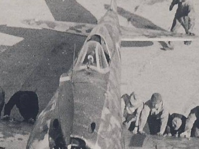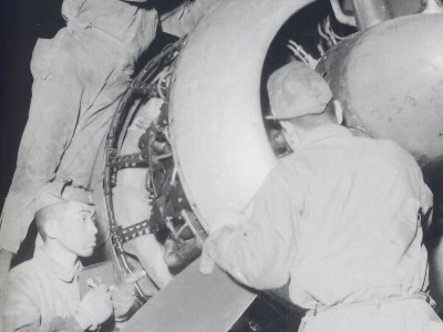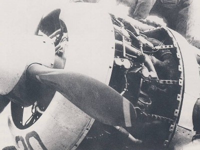 ![]() 情報として貴重な一葉。整備兵の服、手袋や、機器類と較べたコクピット内壁(画像左上のあたり)の明度(結構暗い)が興味深い。一連の写真からU型と思われる。 |