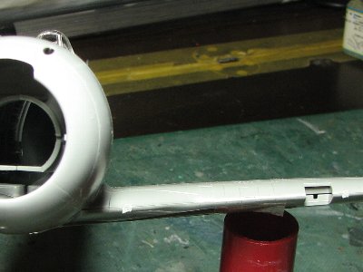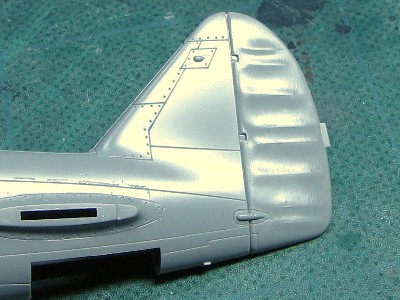 ![]() キットはそのあたりが曖昧。胴体からなめらかに尾翼に移行している。また、垂直尾翼前縁が厚いのもNG。 |