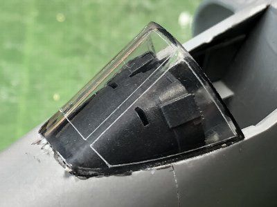 ![]() プリントして胴体に接着する。フチは伸ばしランナー。ジェットノズルもプリントして仮組み。 |