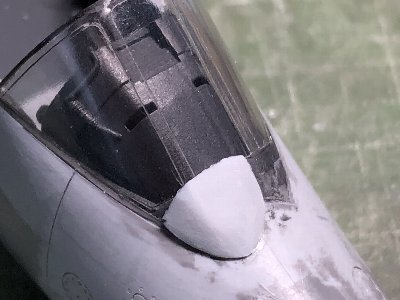 ![]() レドームも塗装。本体はC333のEDSG。後端のフチはタミヤのLP84。先端はLP84とC330ダークグリーンを半々。 |