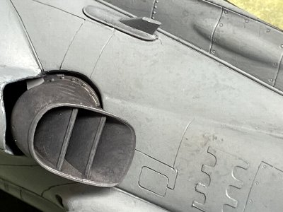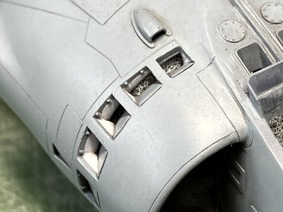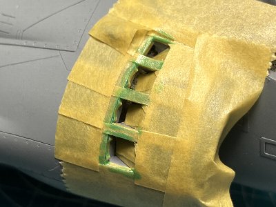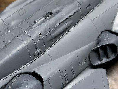 ![]() 補助インテイクの中は白。フチにMSGが残るというややこしい塗り分け。ちまちまとマスクする。 |