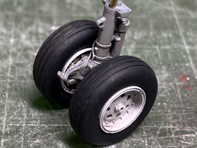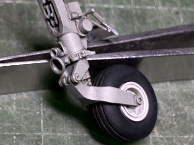 ![]() 3DPの脚回りを塗装。脚柱はC332ライトエアクラフトグレイ。ホイルは半艶白。ウェザマスで軽くスミイレ。 |