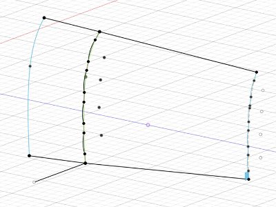 ![]() 内面、外面それぞれフォームモードのロフトで作る。まずスケッチ。内面は複雑な断面形をしている。 |